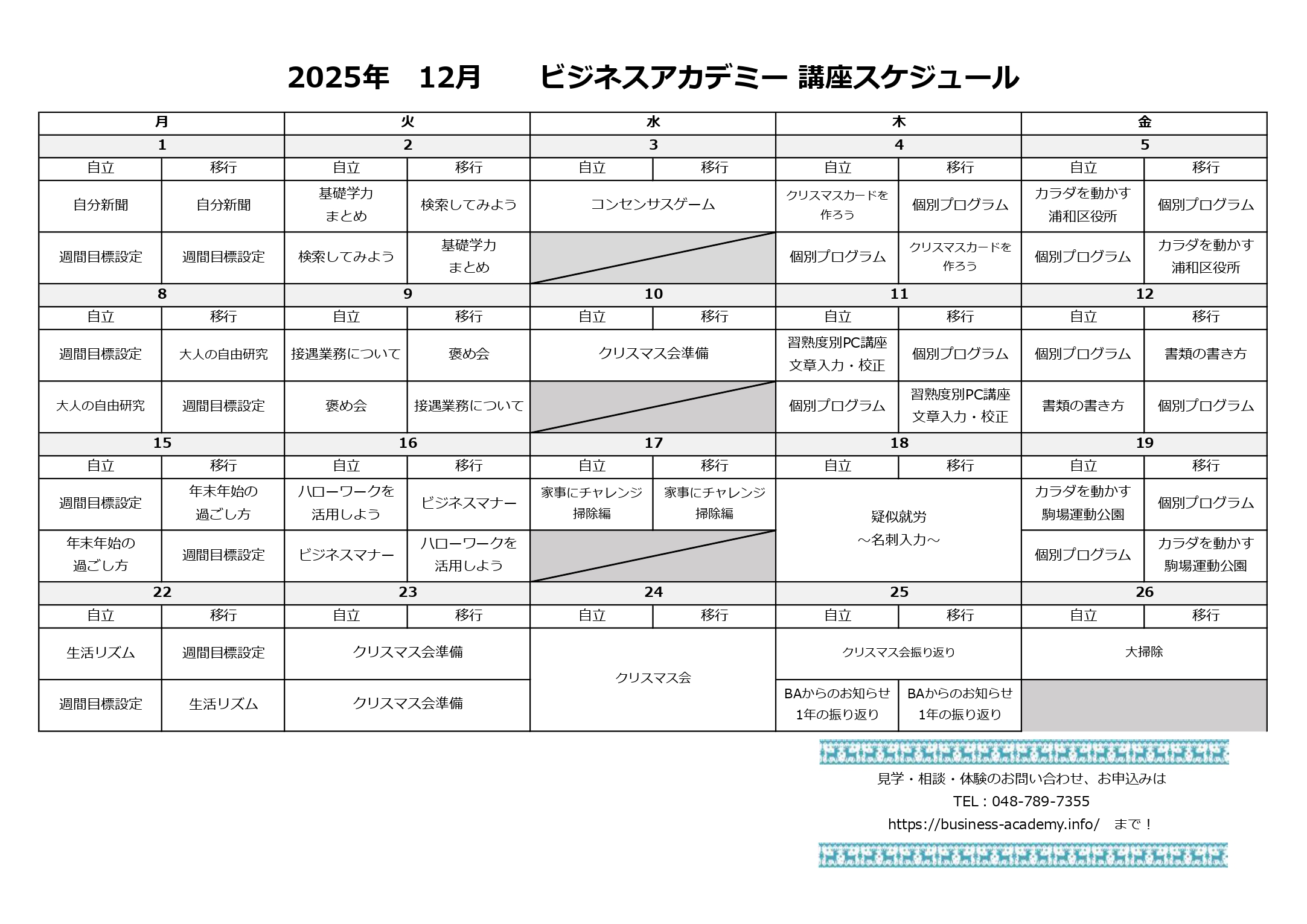 お知らせ「ビジネスアカデミー年末年始の予定」