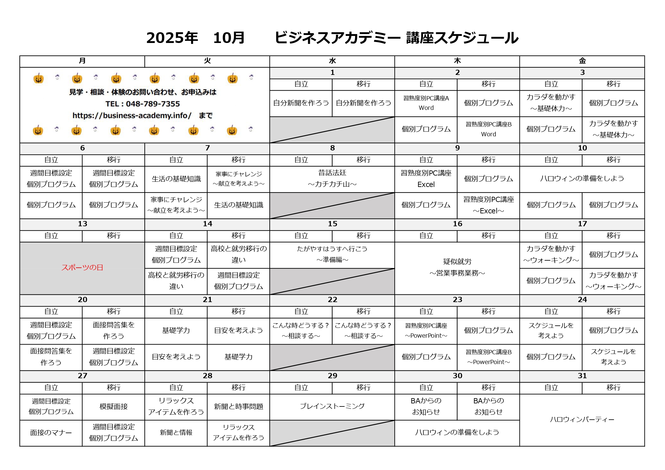 10月のプログラム