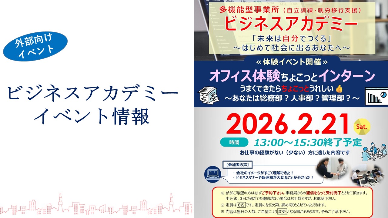 【告知】オフィス体験ちょこっとインターン