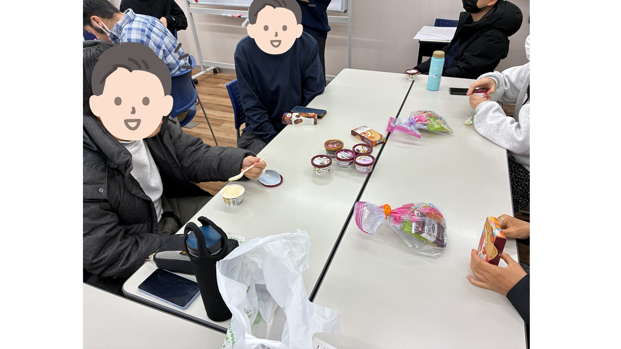 また、一生懸命がんばった皆さんへのご褒美として、アイスをふるまい、みんなで楽しく談笑する時間を設けました。作業の後ということもあり、リラックスした雰囲気の中で自然と会話も弾み、笑顔があふれるひとときとなりました。